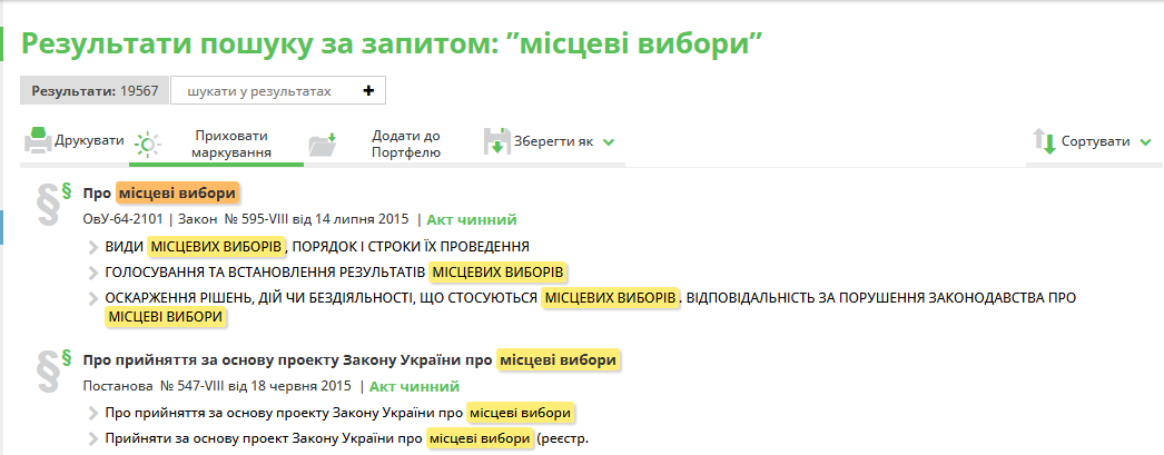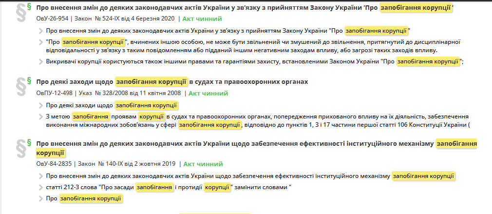 - Такий спосіб може бути корисним при пошуку актів, що мають кілька загальновживаних скорочень, наприклад: